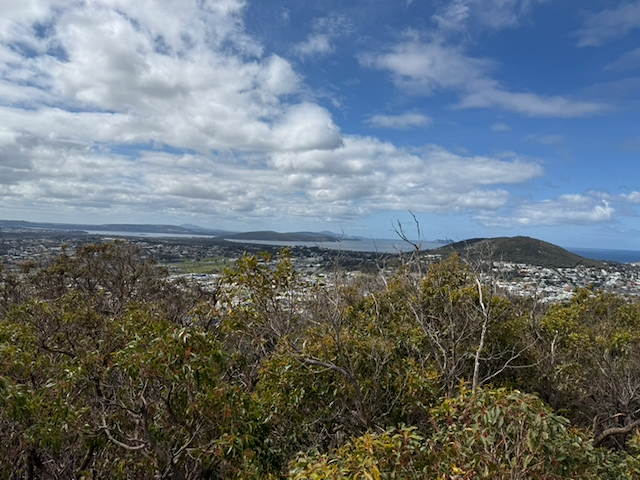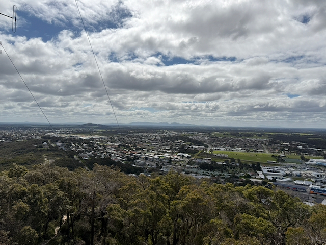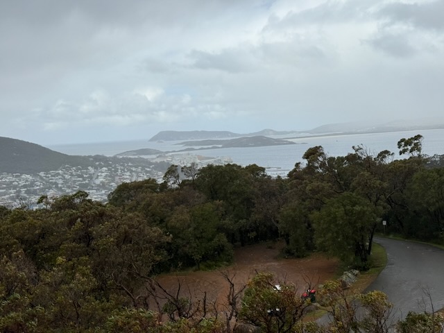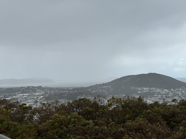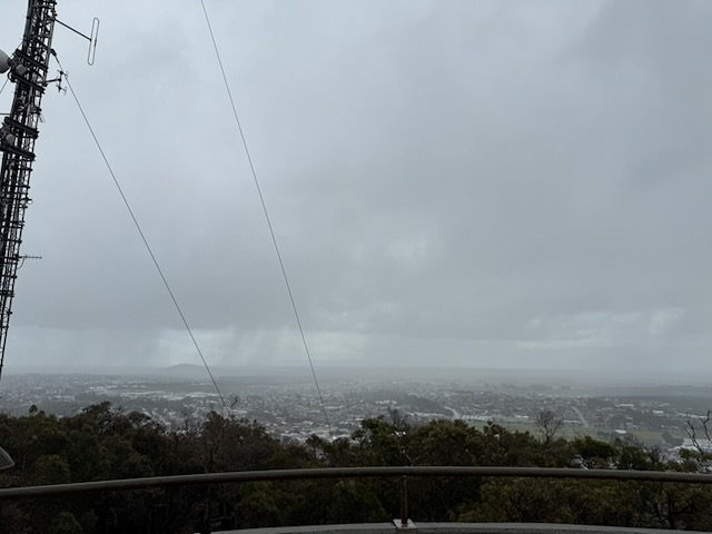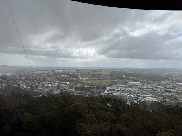 On the way back from the reserve, the rain closed in again, as you can see from our photos of the view from Mount Melville Lookout Tower.