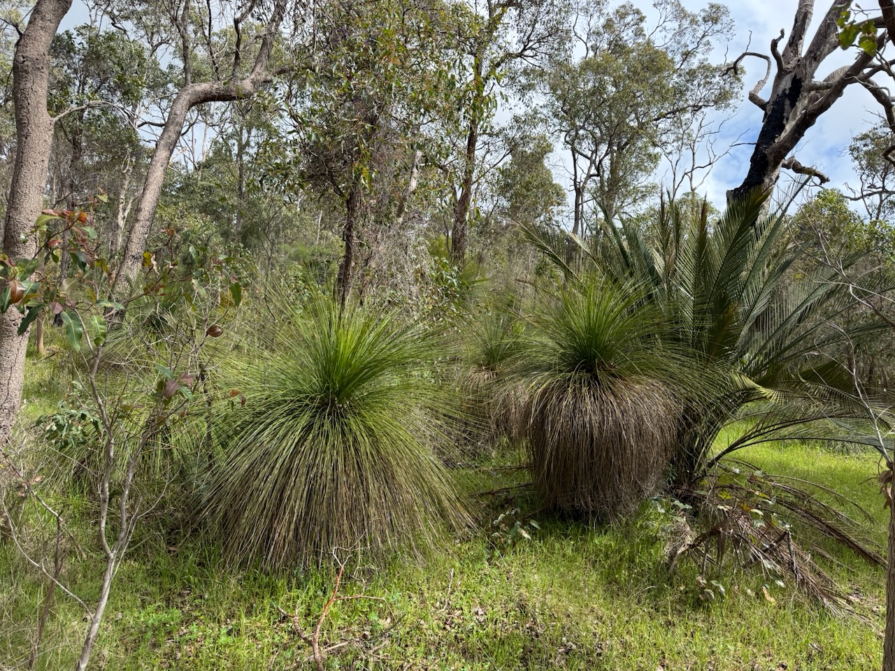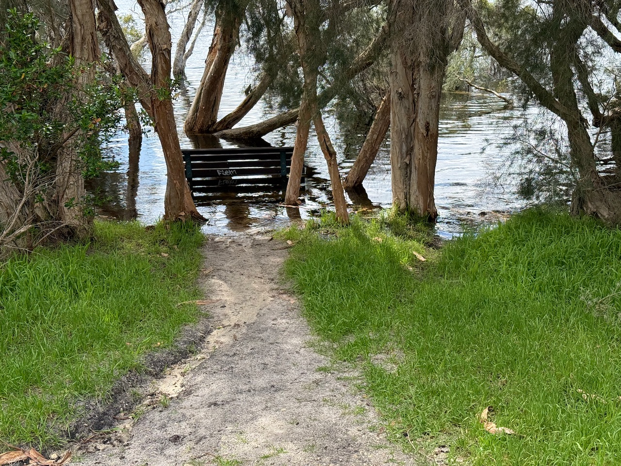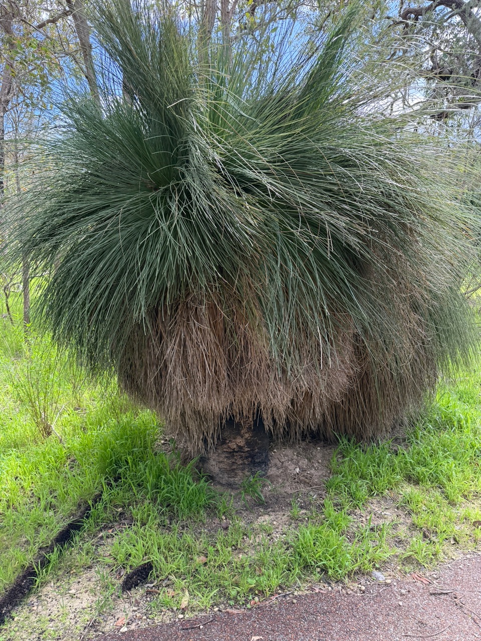 There is a well-made, flat and well-used walking/cycle path around the lake, and the shores are covered with masses of local flora, including enormous grass trees. Though where we walked wasn’t really about flowers, we saw quite a few. Also birds, including many black cockatoos. There is also a wetland area which was full of singing frogs.